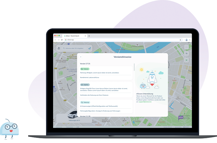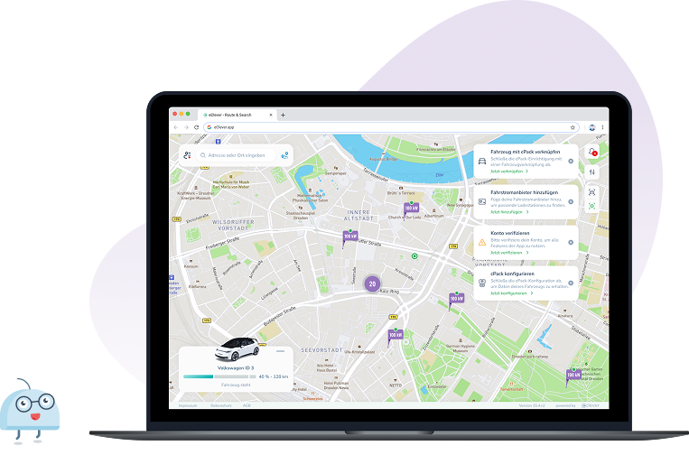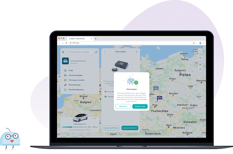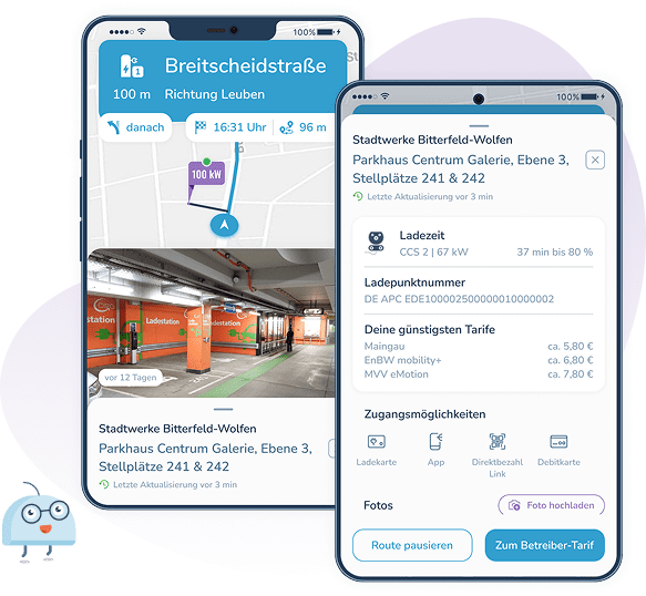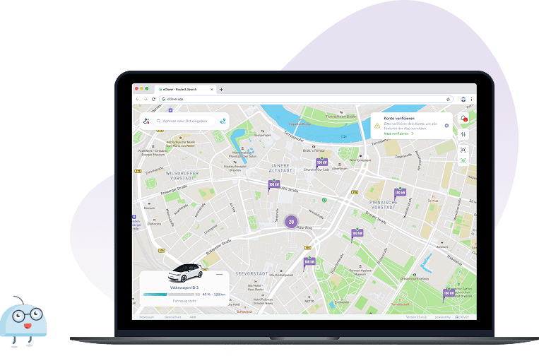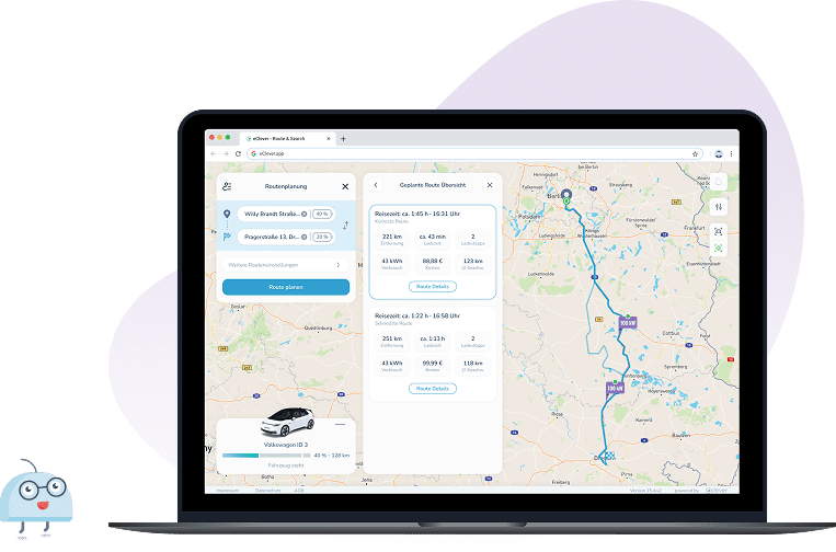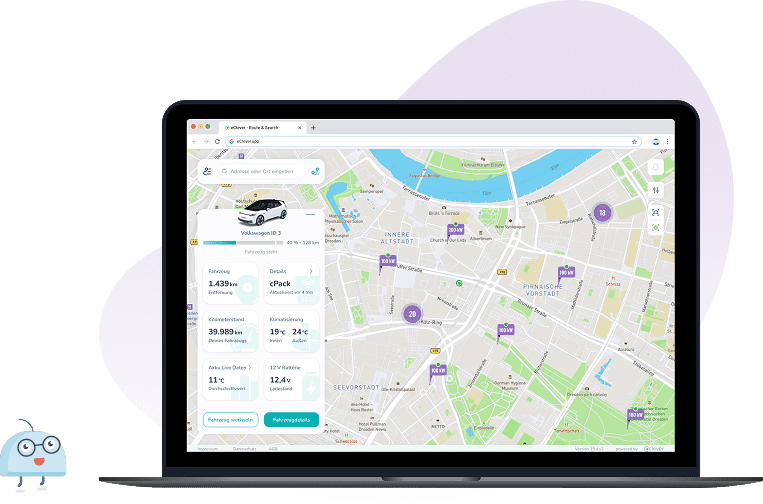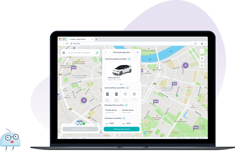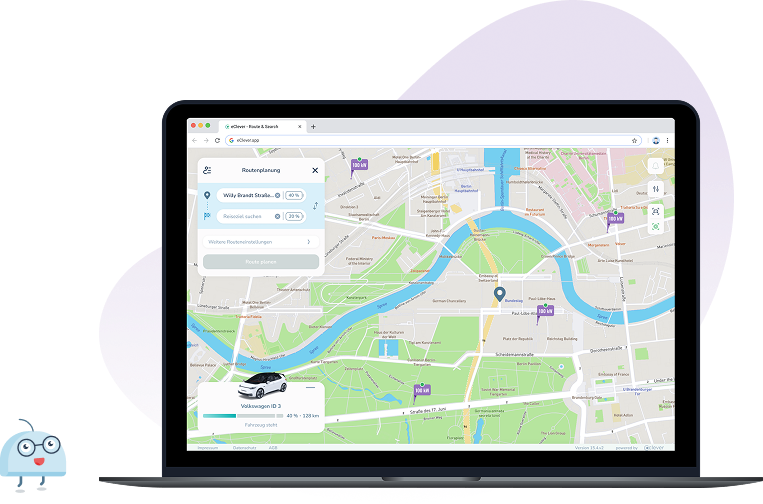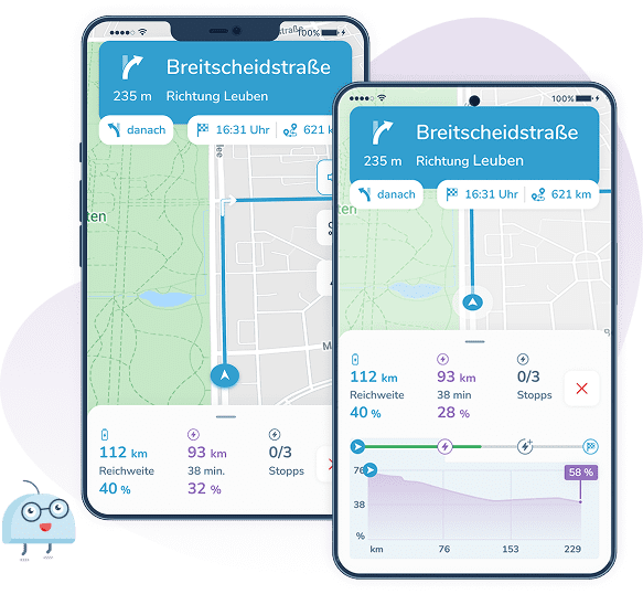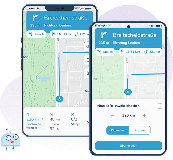 • Achtung: Der eingegebene Ladestand und Startort stimmen nicht mit deinen Live-Daten überein. Wenn du die Route startest, wird die Navigation mit deinem aktuellen Standort und Ladestand durchgeführt.
