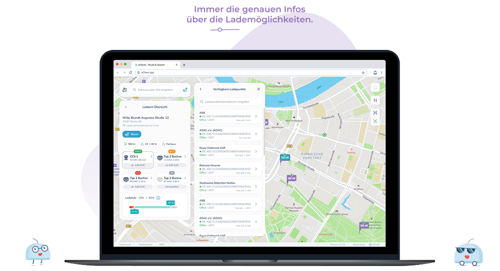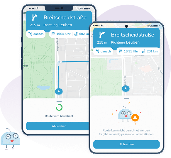 • Route kann nicht berechnet werden. Es gibt zu wenig passende Ladestationen.