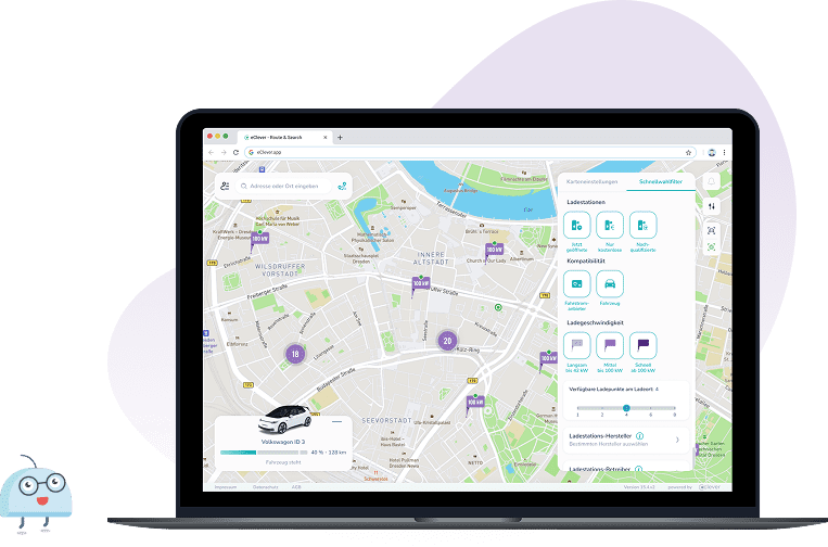 • Ladekabel auswählen: Ohne Auswahl des Ladekabels siehst du nicht alle Ladestationen.